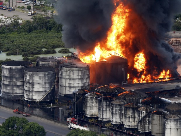 Mais de 100 homens do Corpo de Bombeiros seguem trabalhando sem intervalos para controlar o incêndio que atinge uma área industrial em Santos, no litoral de São Paulo, desde a última quinta-feira ...